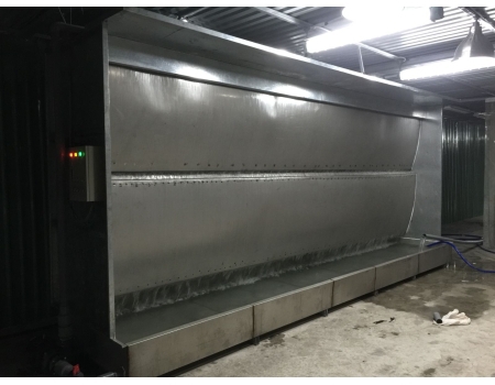 Buồng phun sơn màng nước là sự kết hợp giữa quạt hút và tấm màng nước được gắn bên trên buồng sơn. Buồng sơn có thể hút bụi sơn ở nhiều vị trí khác nhau, mang lại hiệu quả tuyệt đối khi sơn và góp phần bảo vệ sức khỏe con người và môi trường xung quanh.